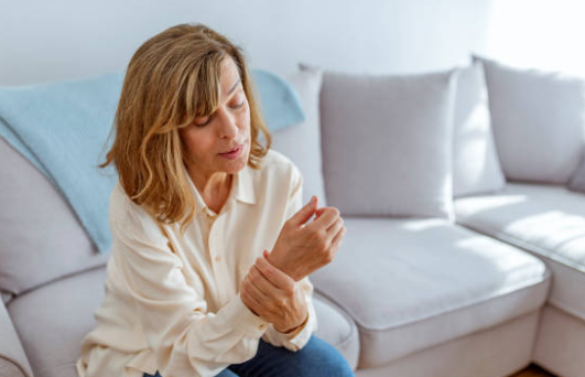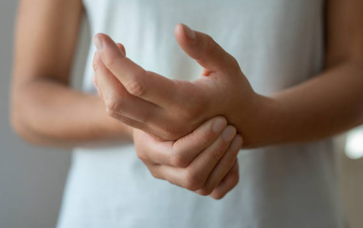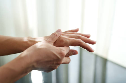 손가락 마디가 콕콕 쑤시거나 찌릿한 통증이 생길 수 있습니다. 특히 문고리를 돌리거나, 병뚜껑을 열거나, 무거운 물건을 들 때 통증이 확 느껴질 수 있습니다.